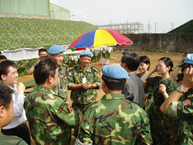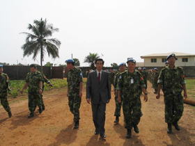 歡迎儀式結(jié)束后,林大使在周紹瑞參謀長及中國維和部隊各分隊領(lǐng)導(dǎo)的陪同下,視察了我維和部隊營地,并看望了各級指戰(zhàn)員。