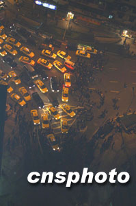 位于重慶市江北區的重慶天原化工總廠今天發生氯氣泄漏事故,事故現場發生爆炸,目前已造成七人死亡,十余萬民眾被緊急疏散撤離。圖為大批被疏散撤離的民眾滯留街頭造成交通堵塞。 作者:郭晉嘉