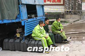 四月十七日,武警戰(zhàn)士在重慶天原化工總廠外嚴(yán)陣以待。十五日晚,重慶市天原化工總廠發(fā)生氯氣泄漏事故,有十五萬人撤離.作者:鄒輝