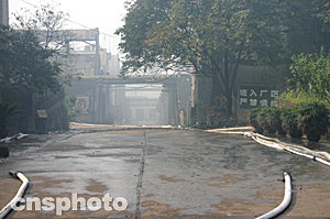 天原化工廠搶險(xiǎn)指揮部目前已經(jīng)撤離到離核心區(qū)一公里外桃花山莊。記者在山莊可以俯瞰到現(xiàn)場(chǎng)的情況。
