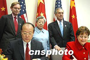中美在四月二十一日結束的第十五屆中美商貿聯委會上,就“高技術出口最終用戶訪問”達成協議,這將推動美國對華高科技出口。圖為中國商務部副部長馬秀紅(左)與美國商務部副部長杰斯特(右)在簽字。作者:余東暉