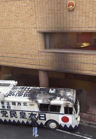 圖文:日本右翼分子駕車沖撞中國駐大阪總領事館