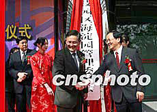 四月三十日,中關村科技園區海淀園管理委員會正式掛牌成立。十五年前,海淀科技園區的誕生曾做為中國管理體制改革的一個創舉,而在中國高科技發展的進程中留下了濃墨重彩的一筆。十五年后,海淀管委會的成立更是標志著中國建設創新型政府、服務型政府的體現。北京市副市長范伯元(左)和海淀區委書記潭維克(右)為海淀園管委會成立揭牌。中新社記者:張勤