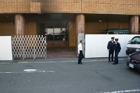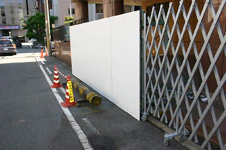 中新網5月6日電 5月6日上午,日本政府有關部門派維修工人把被日本右翼分子撞毀的中國駐大阪總領館的大門換下,重新安裝嶄新的新鐵門,在維修期間總領館大門還暫時敞開著,大門兩邊安置白色板面裝飾大門兩側。(《關西華文時報》叢中笑/春風)