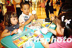 5月6日,香港海港城舉辦“母親節(jié)率先表愛意”活動(dòng),小朋友與母親一起制作徽章享受溫馨快樂時(shí)刻。作者:洪少葵