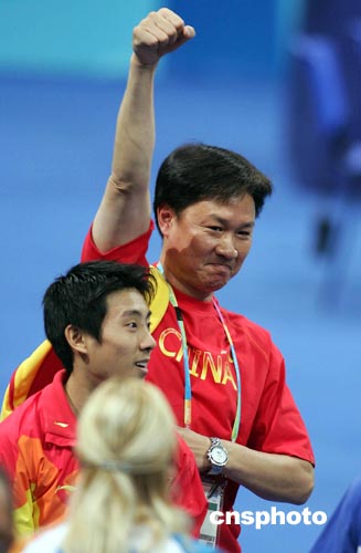 中國體操隊主教練黃玉斌興奮不已