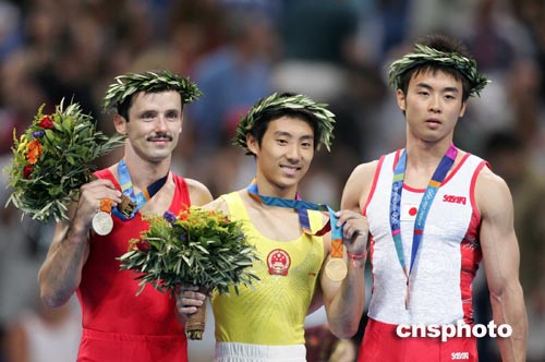 中國選手滕海濱獲得雅典奧運男子鞍馬冠軍,羅馬尼亞名將烏茲卡和日本選手鹿島丈博分別獲得銀牌和銅牌。