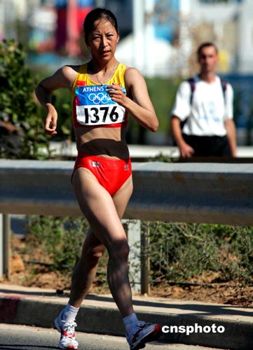 當地時間8月23日上午,在雅典奧運會女子20公里競走比賽中,中國老將王麗萍僅獲得第八名。中新社記者:張煒