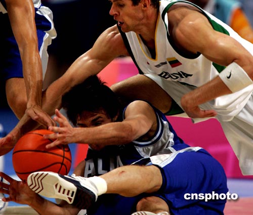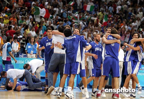 當地時間8月27日晚,進入雅典奧運會男籃半決賽的四只球隊捉對廝殺。不可一世大有非冠軍莫屬的立陶宛眾球星,遇上更加神勇的意大利隊。雙方在快攻中展開三分球大戰,結果以三分球準確而著名的立陶宛35投僅15中,意大利卻28投18中。意大利5號BASILE投中11個三分球,砍下全場最高分31分。意大利終以100比91擊敗立陶宛晉級決賽,而決賽的對手是淘汰美國“夢六隊”的阿根廷隊。中新社記者:任晨鳴