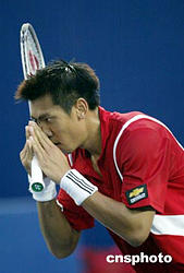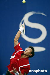 九月十五日,中國(guó)網(wǎng)球公開賽ATP男子單打比賽在北京網(wǎng)球中心的中央球場(chǎng)進(jìn)行,有亞洲男子單打網(wǎng)球頭號(hào)選手之稱的泰國(guó)選手斯里查潘,以六比四和七比五艱難戰(zhàn)勝法國(guó)選手利斯納德,晉級(jí)下一輪比賽。中新社記者:盛佳鵬