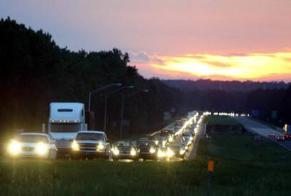 據(jù)路透社報道,颶風“伊萬”即將登陸美國東南部沿海。當?shù)卣φf服上百萬居民盡快疏散至安全地帶。圖為美國南部沿海居民星夜撤出颶風登陸區(qū)。(固山)