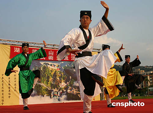湖北武當山武術文化交流訪問團于9月16日至29日到臺灣巡回表演。18日,訪問團在臺北市天母公園表演。作者:黃少華