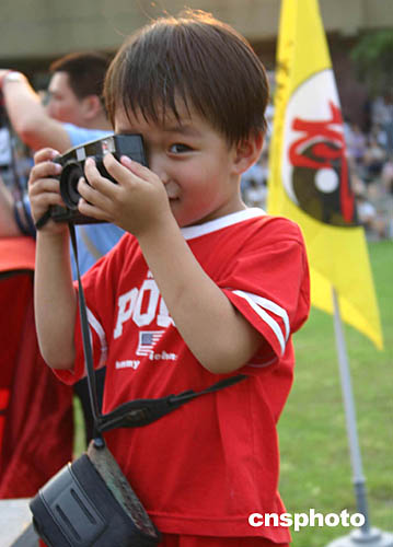 臺北小“攝影家”拍攝大陸武術表演