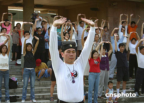 圖為民眾在教練的帶領下演練武當養生功法。
