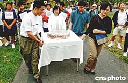 美西時間九月十八日,中國駐舊金山總領(lǐng)館的外交官們帶著大月餅到加州庫柏蒂諾市參加當(dāng)?shù)貎S社舉辦的第六屆中秋游園會。作者:陳鋼