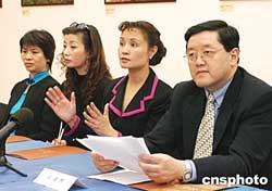 被稱為世界服裝之都的紐約,二○○四年十二月將由華人首次主辦模特選拔賽,比賽名為“美麗人生”。圖為選拔賽召集人艾冰(右二)與紐約華人總商會會長劉建邦(右)等向新聞界發布消息。據悉,在世貿組織有關紡織品配額開放后,這次比賽將給新銳服裝設計師和華人服裝廠商提供施展拳腳的機會。作者:龔文謨