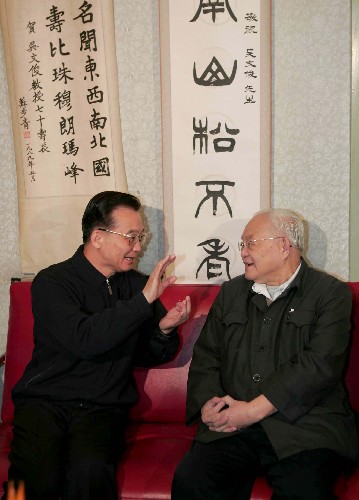 中新網(wǎng)11月2日電 據(jù)新華網(wǎng)報道,在中國科學(xué)院成立55周年前夕,中共中央政治局常委、國務(wù)院總理溫家寶10月31日上午專程來到中關(guān)村著名科學(xué)家吳文俊、劉東生、李國杰家中,看望三位科學(xué)家,與他們促膝談心,討論中國科技發(fā)展問題。