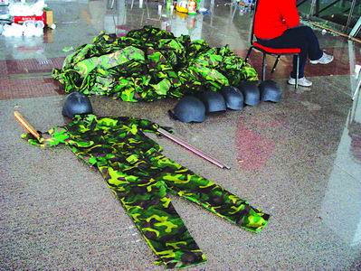 昨天上午,珠寶商戶們坐在怡和建材城三號樓一層的地鋪上休息。在4樓的女廁所里,一珠寶商戶發現了30多套迷彩服和8個鋼盔。傷勢較重的龔女士左腰部留有明顯淤青,上面涂滿了厚厚的藥膏。池先生的右太陽穴紅腫發青。還有一名商戶頭部受傷在中日友好醫院留院觀察。和平街派出所的民警正在對珠寶商戶逐一錄口供調查。(陶嬋、傅沙沙)