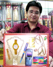 有意思的是,曾有個中年顧客在購買這些物品時,帶著疑問的口吻問:“會不會那天收到先人的來電?”而賣東西的老板答得很干脆:“不用擔心,陰陽兩地的手機頻率不同。”