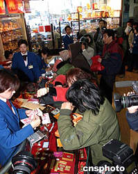 11月19日,數(shù)百名北京市民在菜百商場排隊(duì)購買雞年賀歲金條。盡管黃金價格連年看漲,賀歲金條的價格由三年前的99元/克漲至今年的125元/克,仍未擋住北京市民的購買熱情。中新社記者:史利