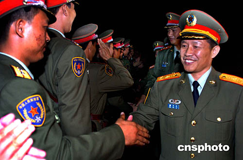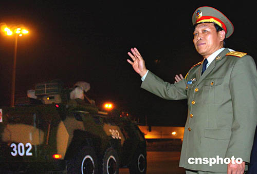 解放軍香港駐軍部隊副政委李文潮少將,11月25日凌晨在落馬洲口岸歡迎先頭進港的輪換部隊。