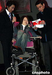 | 中國數(shù)字原創(chuàng)盛會“英特爾·二零零四年度中國數(shù)字盛典”頒獎典禮活動十二月十六日晚在北京舉行,各方代表、明星嘉賓和十五名Diggi數(shù)字原創(chuàng)大獎獲得者與會。據(jù)悉,本次比賽開創(chuàng)五項之最,即最大規(guī)模、最廣泛影響力、最權(quán)威、最娛樂、最高獎金額,共收到參賽作品近一萬五千份。圖為用嘴創(chuàng)作FLASH作品、享譽網(wǎng)絡(luò)世界的閃客田甜(中)在頒獎典禮上擔任開獎和頒獎嘉賓。中新社記者:盛佳鵬