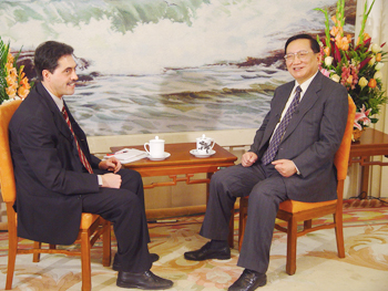中新網(wǎng)12月23日電 據(jù)外交部網(wǎng)站消息,12月23日,國務(wù)委員唐家璇在人民大會堂接受了卡塔爾半島電視臺駐京記者伊扎特的采訪,介紹了他即將于12月25日出訪巴勒斯坦和以色列的目的,并就中東和平進(jìn)程、伊拉克局勢等其他問題回答了提問。