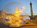 當(dāng)?shù)氐氖フQ裝置中,最矚目首推Vendome廣場(chǎng)上一個(gè)個(gè)巨型圣誕泡泡玻璃球,不但每個(gè)泡內(nèi)也藏有一株圣誕樹,透過光折射,似將整個(gè)廣場(chǎng)藏于泡內(nèi),很有童話色彩﹗原來這些玻璃球是紀(jì)念瑞士在巴黎推廣旅游一百周年而特地設(shè)置的。