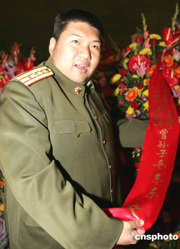 毛澤東的孫子毛新宇代表父母、妻子和2003年12月26日出生的兒子毛東東(毛澤東的曾孫)到北京毛主席紀(jì)念堂敬獻(xiàn)花籃。作者:任晨鳴