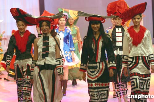 第十屆中國模特之星大賽冠軍莫萬丹(右一)、第五屆CCTV模特電視大賽總冠軍郭思雅、二00三年度中國首席名模王敏等二十多位名模,十二月三十日晚在廣西電視臺組織的《冠軍風采》晚會上一展個人才藝,同時展演了時裝設計大師的作品。作者:蔣雪林