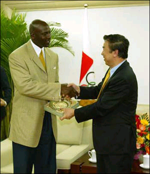 精明的喬丹還借機宣傳一下自己的喬丹品牌:“我也希望通過中國之行推廣我的喬丹運動系列品牌,當然,我也希望更多地了解北京和中國,這座古老的城市和文明古國。”