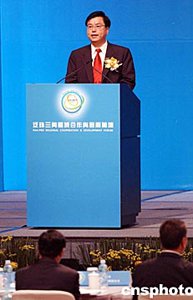 本屆論壇的主題是“合作發(fā)展共創(chuàng)未來”。香港特區(qū)行政長官董建華致歡迎詞。他說,泛珠三角區(qū)域合作與發(fā)展論壇的開幕,標(biāo)志著中國至今最大規(guī)模的區(qū)域合作工程正式啟動。泛珠三角區(qū)域合作,順應(yīng)了當(dāng)前世界經(jīng)濟(jì)發(fā)展的潮流,抓住了亞洲經(jīng)濟(jì)整合帶來的機(jī)會,體現(xiàn)了中國區(qū)域經(jīng)濟(jì)統(tǒng)籌發(fā)展的要求,在推動港澳和內(nèi)地經(jīng)濟(jì)合作上,邁出了重要的一步。現(xiàn)在的主要任務(wù),是要把泛珠三角區(qū)域合作這個嶄新構(gòu)想,一步一步加以落實和具體化,使之成為推動經(jīng)濟(jì)合作發(fā)展的平臺和動力。