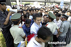 6月12日,2004年北京國際汽車展迎來周末參觀高峰,大批警察、武警、保安在現場維持秩序,確保展會安全、有序進行。中新社記者:盛佳鵬