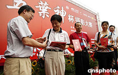 6月15日,由2004北京國際汽車展覽會組委會主辦的“五葉神”杯車展攝影大賽在北京國際展覽中心火爆的氛圍中揭曉, 100余名攝影工作者近千幅精美作品參加比賽,經專業攝影評選團組成的評委評出了眾多獲獎作品。中新社記者:盛佳鵬