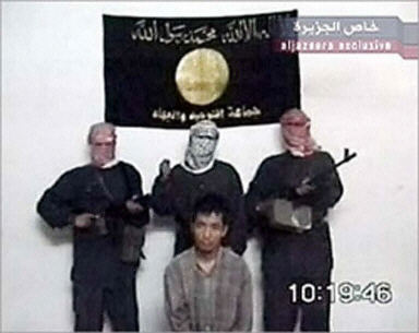 這些宣稱是來自約旦抵抗團體阿布·穆薩卜·扎卡維所屬集團的劫持者們表示,如果在24小時內(nèi)不接受從伊拉克撤軍的要求,則將把被確認(rèn)為金善日(音譯)的韓國人的人頭送到韓國。