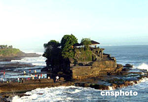 位于印度尼西亞巴厘島的海神廟儜立在大海中,風光旖旎,吸引了各國游客。作者:周景洛