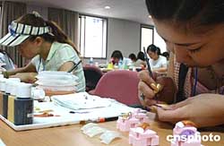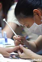八月十四日,來自日本、韓國和中國臺北、中國大陸的四十余名選手,在北京國際展覽館舉行2004國際美甲藝術邀請賽。作者:韓藝冰