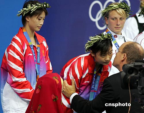 中新社雅典八月十六日電 在雅典當(dāng)?shù)貢r(shí)間十六日晚間進(jìn)行的奧運(yùn)會(huì)跳水女子雙人十米跳臺(tái)決賽中,中國(guó)選手勞麗詩/李婷最終以三百五十二點(diǎn)一四的總成績(jī)奪得冠軍,為中國(guó)跳水隊(duì)贏得本屆奧運(yùn)會(huì)的第三枚金牌。由此,中國(guó)奧運(yùn)軍團(tuán)所獲金牌數(shù)已達(dá)十枚。
