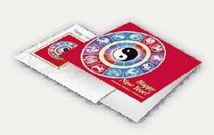 此外,還有特別的首日封設(shè)計(jì),一款設(shè)計(jì)為純白信封,信封左側(cè)有十二生肖到齊排成一圈,喜氣的大紅色為底,12張生肖郵票圍成的圓圈中央,且有太極陰與陽(yáng)的符號(hào)。另一款以中國(guó)人偏好的竹子打底,封面上左側(cè)是某一生肖的造型,十分可愛,上書Happy New Year!集郵愛好者也可買到大紅色的折疊夾,用以保護(hù)首日封或者新郵票。