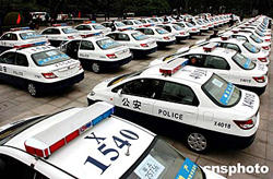 一月五日上午,富力地產(chǎn)集團(tuán)向廣州見義勇為基金會(huì)贈(zèng)送百輛巡邏警車儀式在中山紀(jì)念堂廣場(chǎng)舉行。圖為百輛巡邏警車大展示。作者:陳文