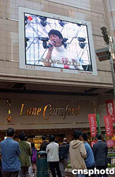 有百多名內地、香港、臺灣藝人,7日下午4時起在香港大球場舉行馬拉松式的《愛心無國界演藝界大匯演》,為南亞海嘯災民籌款,將全城籌款活動推向高潮。圖為時代廣場直播大匯演的情況。作者:譚達明