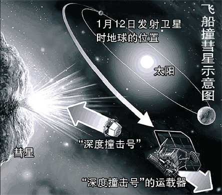 中新網(wǎng)1月12日電 國際在線消息:美國國家航空航天局(NASA)近日傳出消息,一艘名為“深度撞擊號”的飛船將于1月12日升空;6個(gè)月后,其搭載的撞擊器將直接沖向“坦普爾1號”彗星的彗核,完成人類首度撞擊彗星。此次撞擊將首次獲取大量彗核碎片,為人類探究太陽系起源提供新的線索,也為地球遭遇小天體撞擊時(shí)“轉(zhuǎn)守為攻”積累數(shù)據(jù)。