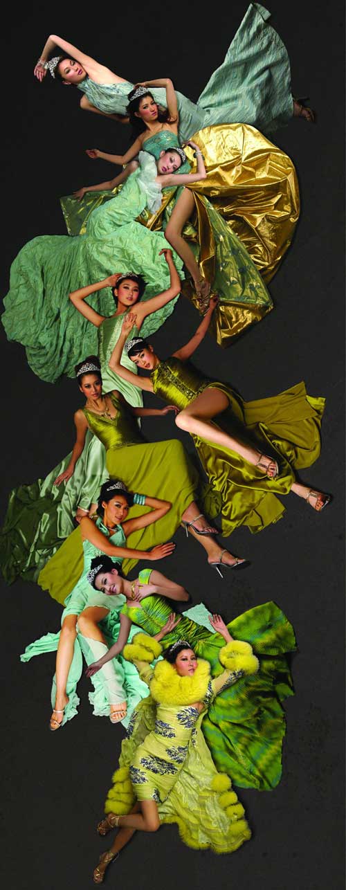 2004中國(guó)時(shí)尚大獎(jiǎng)--年度中國(guó)最佳職業(yè)時(shí)裝模特,王敏(大)、馬力、韋杰、賈妮妮、欒鳳玲、邊彥陽(yáng)、劉巾薇、張?zhí)亍⒋餍∞?由下至上)(圖片提供:黑冰攝影服裝提供:WHITE COLLAT白領(lǐng))