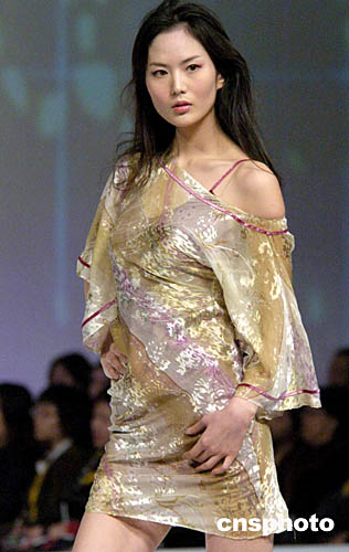 1月19日,香港會展中心舉行“香港時裝節秋冬系列2005”,模特在T型舞臺演繹“獨家時裝表演”專場設計師最新服飾系列。作者:洪少葵