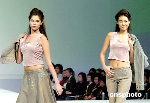 1月19日,香港會(huì)展中心舉行的“香港時(shí)裝節(jié)秋冬系列2005”上,模特在T型舞臺(tái)演繹“獨(dú)家時(shí)裝表演”專(zhuān)場(chǎng)的設(shè)計(jì)師最新服飾系列。作者:洪少葵