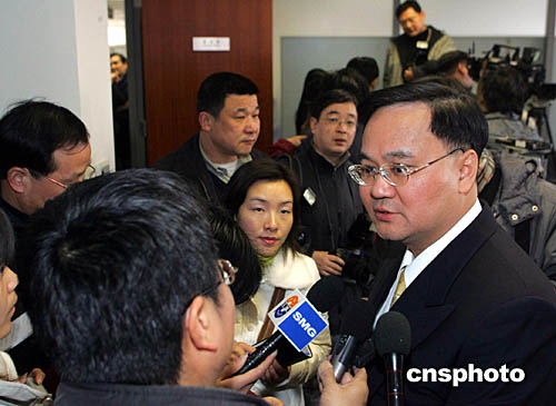 一月十九日,東航與華航在上海簽訂地面代理協議。圖為華航地勤服務處副處長表示,兩岸春節包機在臺灣地區的訂票熱烈程度不比內地差,希望兩岸春節包機今后成為慣例。作者:潘索菲