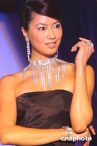 香港恒豐金業科技集團與恒基兆業地產有限公司21日晚在香港國際金融中心舉行《豪宅金鉆耀全城》活動﹐名模展示名貴珠寶鉆飾。中新社記者:趙振清