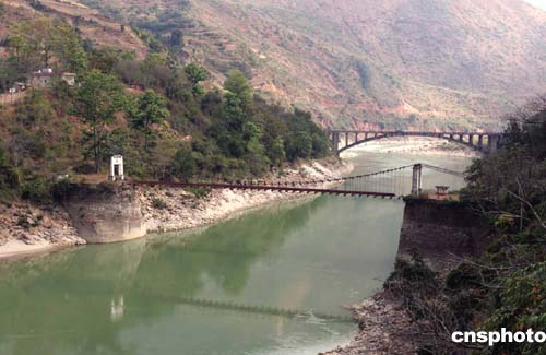 怒江峽谷天險上的惠通鐵索橋,位于現云南省保山市所屬施甸縣與龍陵縣交匯處的怒江峽谷上,是當地愛國華僑梁金山出資所建,1932年動工,1935年落成。該橋長123米,寬6米,1937年修建著名的抗日戰爭大動脈“滇緬公路”時擴建,是這條中國抗日戰爭補給線的咽喉。