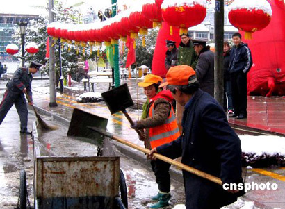 組圖:南京環衛工人掃雪清障為游人