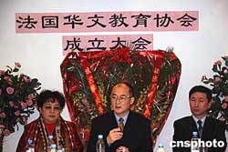 由法國從事華文教育的各界人士組織的法國華文教育協會,二月十九日在巴黎成立。圖為國務院僑辦副主任趙陽(中)在成立大會上致辭。作者:鐘誠